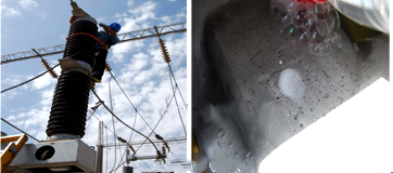 底部進行包扎。靜置一段時間后,對包扎內氣體進行檢測。在C相瓷柱底部內包扎內出現報警信號。為進一步確定具體的位置,通過對該部位采用泡沫法進行檢測,如圖(6)最后在C相瓷柱底部側面位置出現起泡現象。又經檢漏儀確認,在該處確定出現了漏氣現象。
