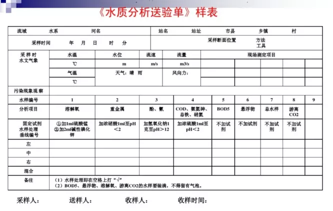 ⑥采樣時應做好現場采樣記錄,填好水樣送檢單,核對瓶簽。